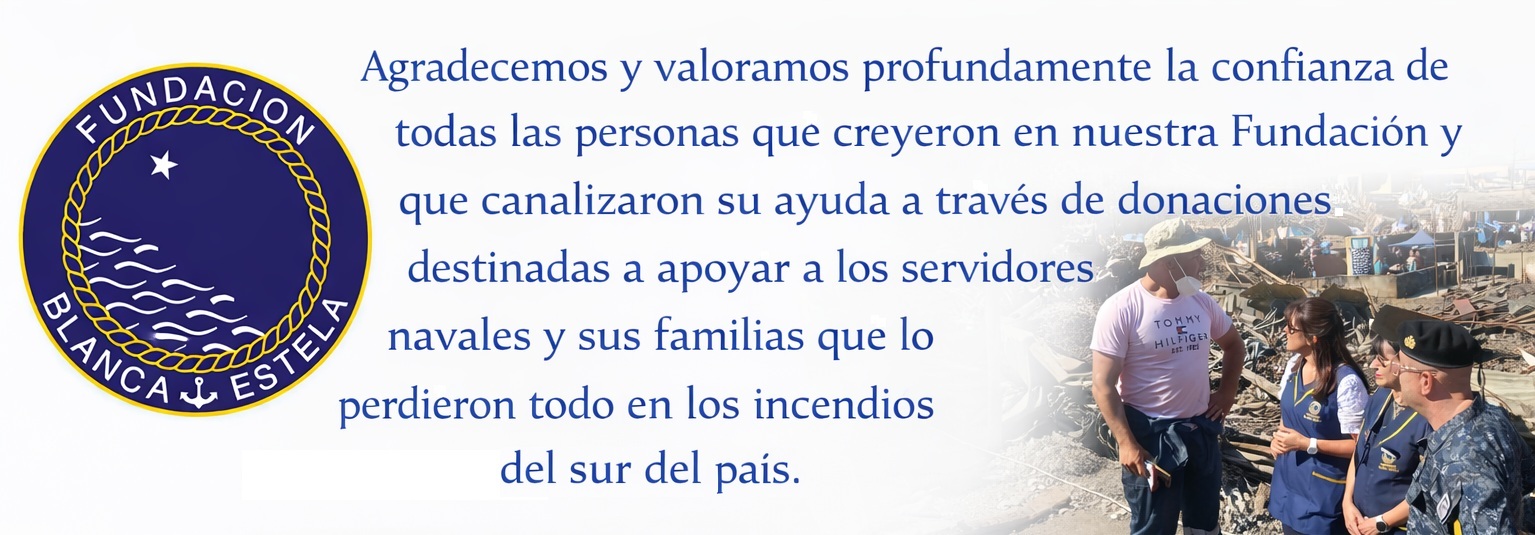 Ante la emergencia provocada por los incendios forestales, la Fundación "Blanca Estela" invita a la Familia Naval a sumarse a una campaña solidaria en apoyo a los servidores navales, en servicio activo y en retiro, que han resultado afectados en el sur del país.
