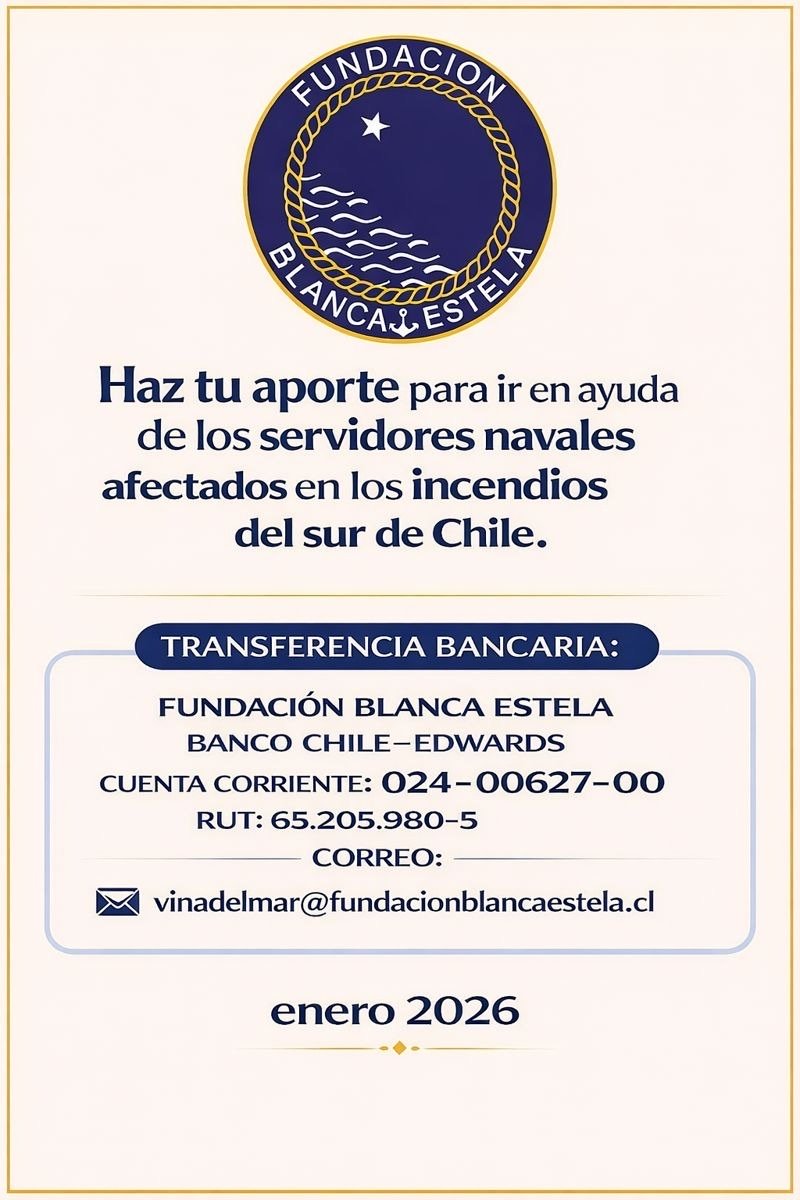 Los incendios que afectan al sur de Chile han impactado a servidores navales y a sus familias, generando importantes pérdidas y necesidades urgentes. Frente a esta difícil situación, la Fundación "Blanca Estela" invita a la Familia Naval a unirse solidariamente para ir en ayuda de quienes hoy nos necesitan.