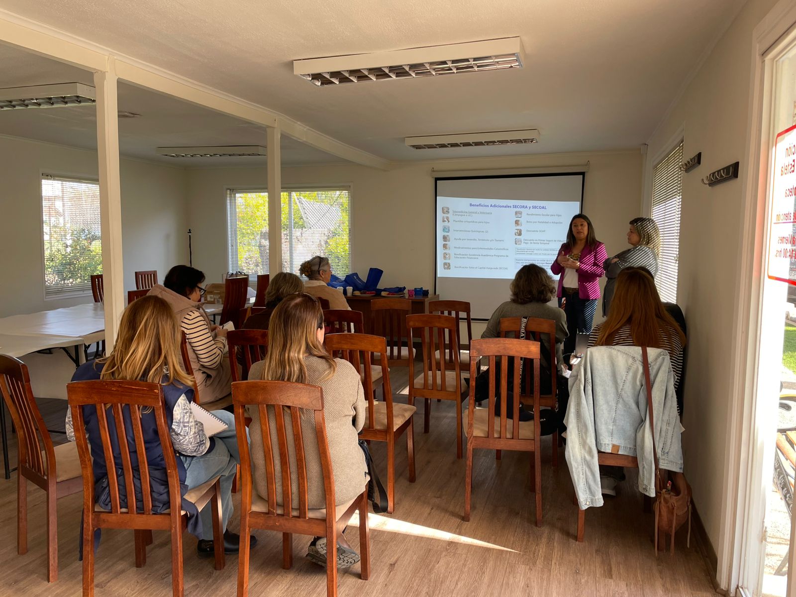 El día 11 de septiembre, en la Sala Esmeralda de la sede Viña del Mar de la Fundación “Blanca Estela” se desarrolló en la charla “Beneficios del Seguro SECORA, Mutual de Seguros de Chile”, instancia que permitió entregar información relevante sobre las coberturas y alternativas disponibles para las señoras beneficiarias del seguro de sus esposos.