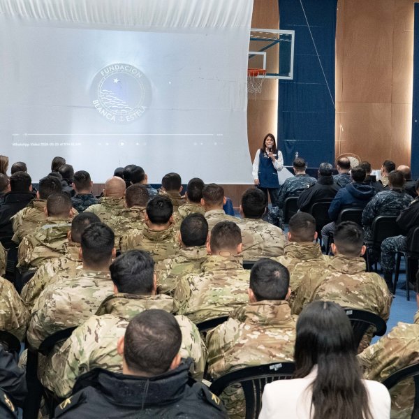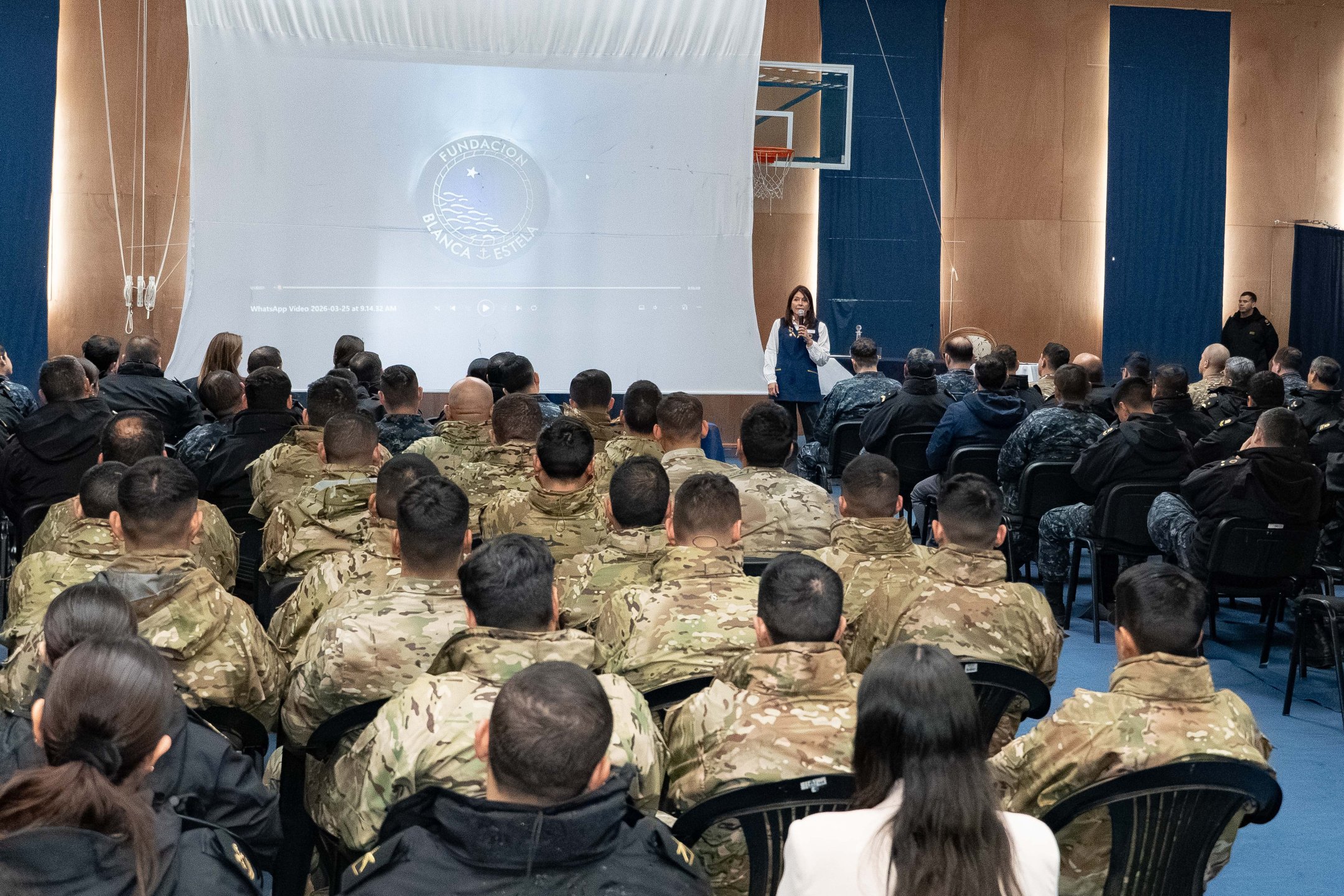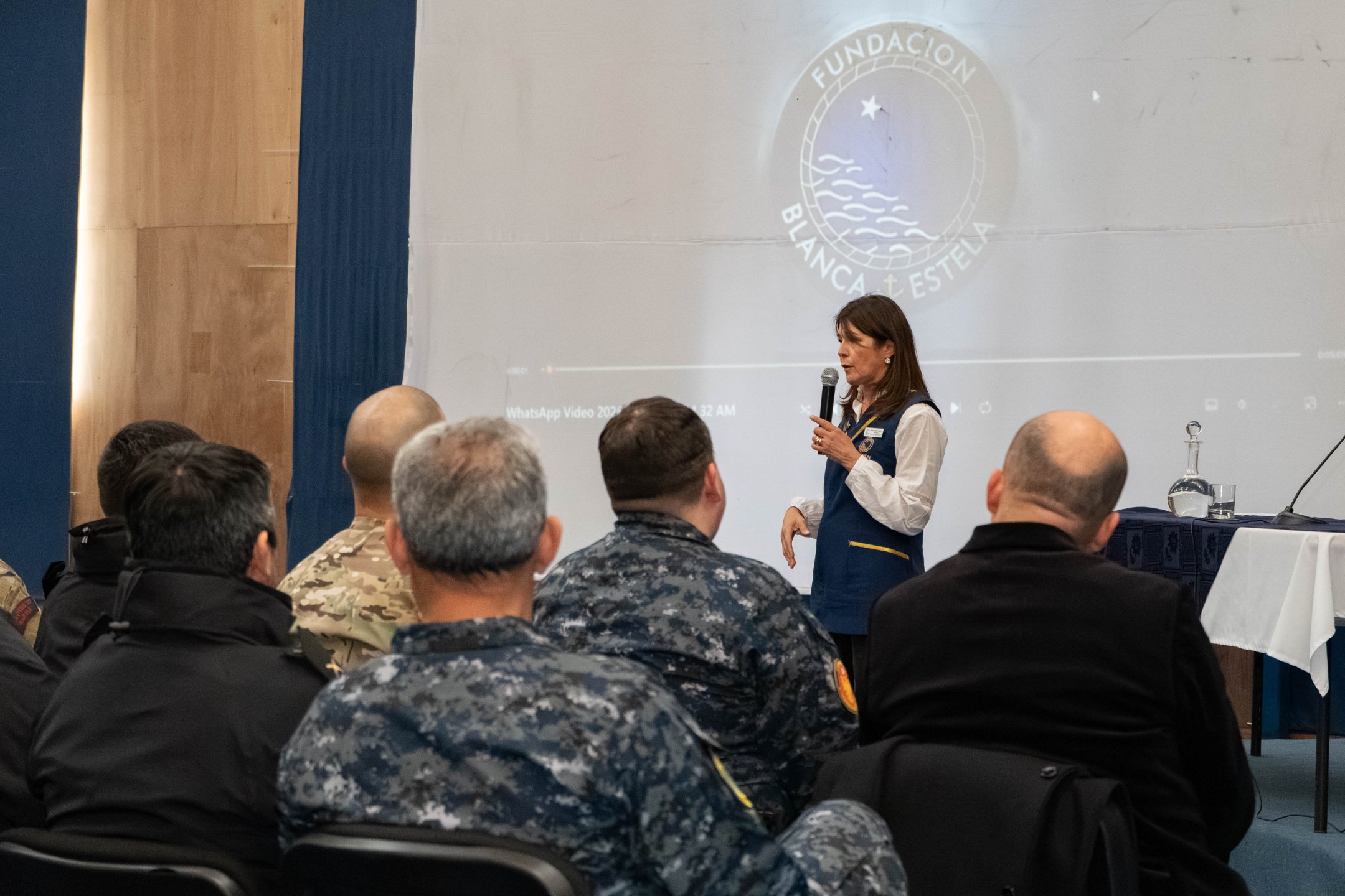 En el marco de su visita a la Región de Magallanes, la Presidenta de la Fundación “Blanca Estela”, Roxana Mery Casella, realizó una presentación en el Gimnasio de la Base Naval de Punta Arenas, dirigida a dotaciones de distintas reparticiones de la Armada.