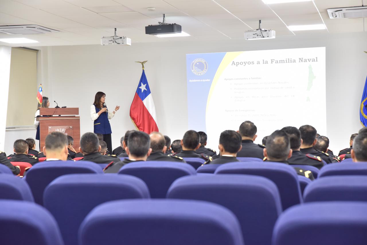 La actividad, se desarrolló el lunes 6 de marzo en el Campus Hyatt de la Academia Politécnica Naval, y contó con la participación de la presidenta de la Fundación, Roxana Mery junto a la directora ejecutiva Antonella Ciuffardi. Ambas acompañaron al Condestable Mayor de la Armada, Suboficial Mayor Guillermo Ramos Santander en una jornada que reunió a quienes cumplen un rol clave en la conducción de personas al interior de la Institución.
